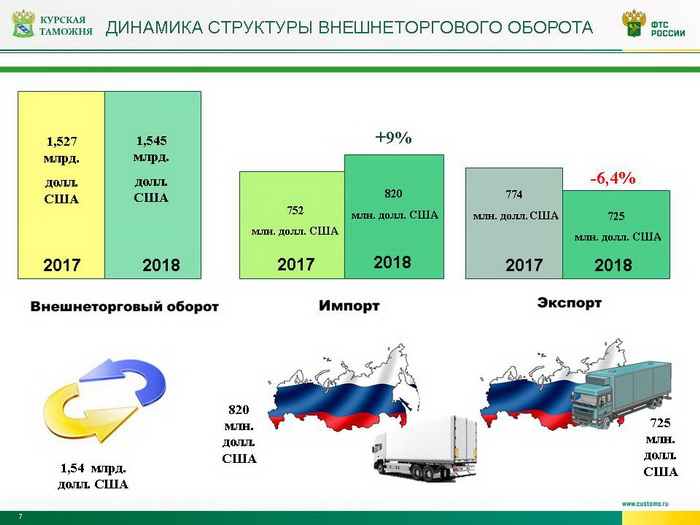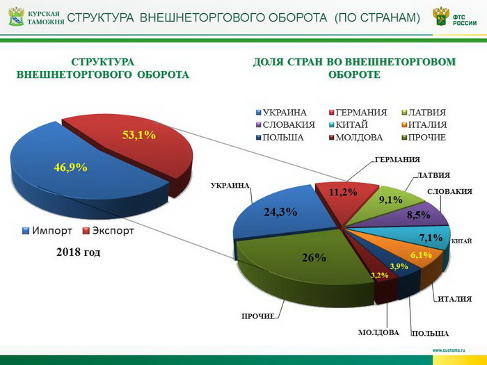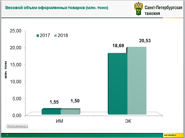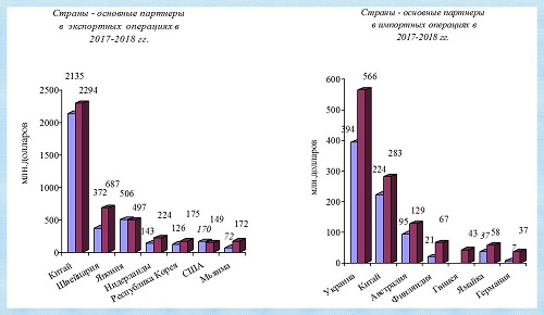 Объемы экспортно-импортных операций по итогам 2018 года составили 33,4 млрд долл. США (сократившись по сравнению с 2017 годом на 3%), при этом физические объемы увеличились на 20%, превысив 88 млн тонн (в 2017 году – 73,7 млн тонн).