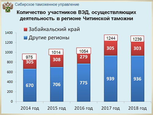 - В течение года таможенное декларирование товаров осуществляли 935 участников внешнеэкономической деятельности (ВЭД), что на 422 участника больше, чем за аналогичный период прошлого года, - сообщил начальник Омского ЦЭДа Михаил Горбунов, - увеличение количества участников ВЭД напрямую повлияло на положительную динамику декларирования.