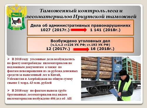 В 2018 году основные усилия Сибирской оперативной таможни и правоохранительных подразделений таможен региона были сконцентрированы на выявлении и пресечении правонарушений в таможенной сфере, а также декриминализации оперативной обстановки на участке российско-китайской государственной границы в регионе деятельности Забайкальского таможенного поста.