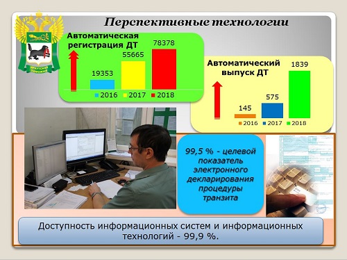 – Абаканский таможенный пост, – рассказал Олег Геннадьевич, – активно применяет современные таможенные технологии. Именно на нашем посту девять лет назад была выпущена первая в Хакасской таможне электронная таможенная декларация, мы первыми в таможне выпустили декларацию на товары с использованием технологии удаленного выпуска, первыми стали использовать технологию автоматической регистрации таможенных деклараций, а год назад на нашем посту была выпущена первая декларация на товары без участия инспектора.