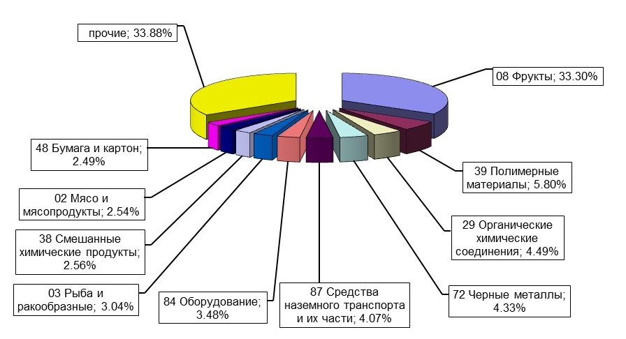 Объем запрещенной к ввозу продукции, выявленной по итогам работы мобильных групп, составил около 72 тыс. тонн, из которых 10% (7,2 тыс. тонн) пришлось на санкционные товары. В сопредельные государства возвращено 64,1 тыс. тонн продукции (в два раза больше, чем в 2017 году); уничтожено 4,6 тыс. тонн (в 2017 году – 8 тыс. тонн).