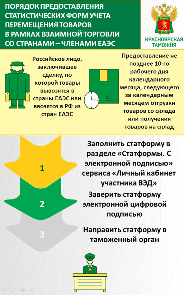 Красноярская таможня информирует, что с марта 2023 года для граждан, зарегистрированных в качестве самозанятых (без статуса индивидуального предпринимателя), в «Личном кабинете участника ВЭД» реализована возможность представления статистических форм учета перемещения товаров.