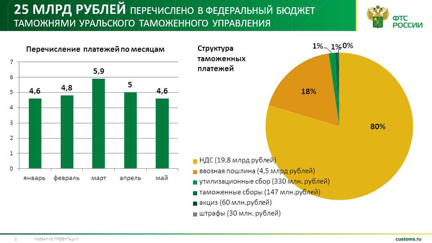 С января по май 2020 года Новосибирская таможня перечислила в федеральный бюджет 2,2 млрд. рублей, почти столько же, сколько и за аналогичный период 2019 года (2,3 млрд. рублей).