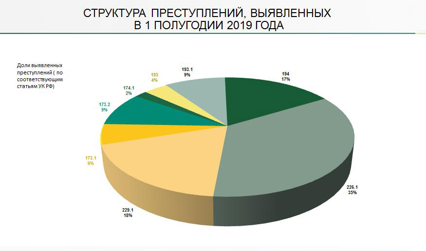 По результатам контрольных мероприятий в первом полугодии 2019 года в деятельности 3139 проверенных лиц было выявлено более 9 тыс. нарушений. Возбуждено 2449 дел об административном правонарушении и 111 уголовных дел.