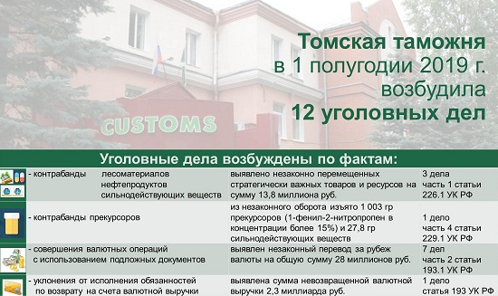 В первом полугодии 2019 года Смоленская таможня возбудила девять уголовных делВажным направлением в работе таможни является борьба с преступлениями в таможенной сфере. За первые шесть месяцев 2019 года смоленскими таможенниками выявлено 35 фактов с признаками совершения различных преступлений. По 26 из них материалы преданы по подследственности в другие правоохранительные органы, По девяти фактам таможней возбуждены уголовные дела. Более половины из них – пять уголовных дел по фактам контрабанды сильнодействующих веществ (ст. 226.1 УК РФ) и одно - психотропных веществ (ст. 229.1 УК РФ). - Контрабанда запрещенных веществ осуществлялась из Республики Беларусь на территорию Российской Федерации. В результате изъято более 150 г запрещенных веществ (метандиенон, клоназепам, нандролон деканоат и другие), перемещаемых как в ампулах, так и в блистерах. В трех случаях уголовные дела возбуждены в отношении конкретных лиц, - сообщил и.о. заместителя начальника таможни Сергей Панин. Еще одно уголовное дело возбуждено буквально в июне по ст. 193 УК РФ по факту уклонения представителями одного из ООО обязанностей по репатриации денежных средств в крупном размере на сумму 506 тыс. долларов США. Два уголовных дела возбуждены по ст. 194 УК РФ по факту уклонения от уплаты таможенных платежей. Так, в феврале 2019 года, чтобы избежать уплаты таможенных платежей, одна из организаций предоставила в Смоленскую таможню заведомо ложные сведения о технических характеристиках дизель-генераторной установки иностранного производства, решив «сэкономить» на уплате таможенных платежей более 5,7 млн. По факту уклонения организацией от уплаты таможенных платежей возбуждено уголовное дело по ч. 1 ст. 194 УК РФ. Ущерб, причиненный государству, возмещен в полном объеме. Пресс-служба ЦТУ 10.07.19