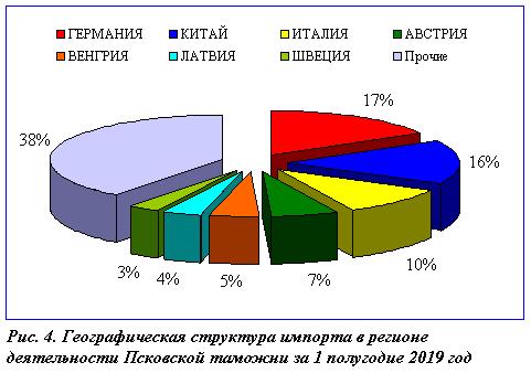 - Снижение обусловлено понижением стоимостного объема импорта на 24%, - пояснила заместитель начальника таможни Юлия Тулумбасова. - Стоимостной объем экспорта увеличился на 22,9% и составил 50,31 млн $. Доля экспорта в общем объеме внешнеторгового оборота по сравнению с аналогичным периодом прошлого года увеличилась в 1,5 раза и составила 8% от общего объема товарооборота; доля импорта составила 92% в общем объеме товарооборота. Географическая направленность товарооборота в регионе деятельности таможни не изменилась, наиболее активны связи со странами дальнего зарубежья. Доля стран дальнего зарубежья в товарообороте составила 99,1 %. Наиболее активны внешнеэкономические связи при экспорте товаров со странами Балтии. Среди стран-партнеров наибольший удельный вес занимают Латвия (19%), Эстония (18%), Литва (12%), Румыния (11%), Украина (7%), Испания (3%), Финляндия (3%). Крупнейшими торговыми партнерами при импорте товаров в регионе деятельности таможни являются: Германия (16%), Китай (16%), Италия (11%), Австрия (6%), Венгрия (4%), Латвия (4%), Швеция (3%). Пресс-служба СЗТУ 01.07.19