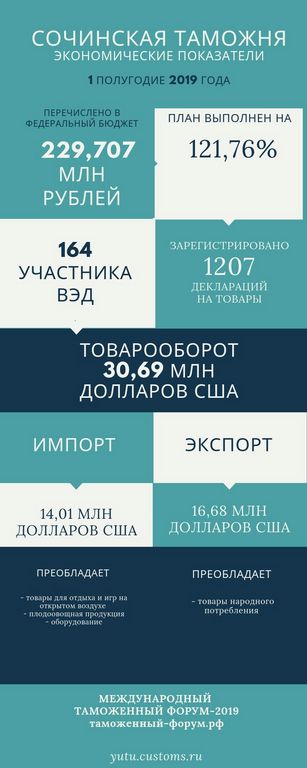 Сочинская таможня: итоги деятельности в первом полугодии 2019 года