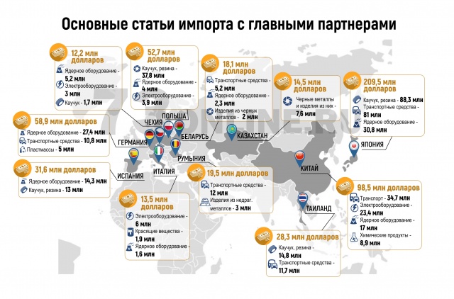Экспорт вырос на 2% и составил $4,4 млрд. Импорт вырос на 32,7% и составил $1,0 млрд.