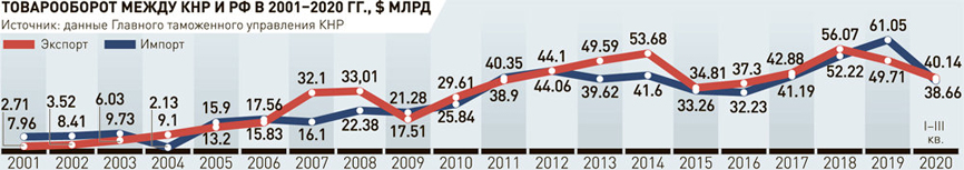 За 20 лет с момента подписания Договора уровень торгово-экономического сотрудничества между КНР и РФ постоянно повышался. Исключение составили только 2009 и 2015 годы.
