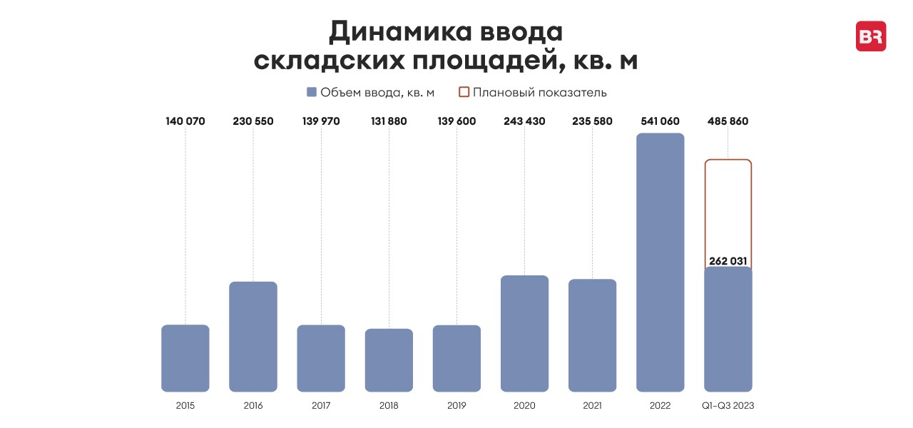 Крупнейшие сделки по аренде складских площадей были заключены в Минском регионе двумя российскими маркетплейсами – Ozon и Wildberries. Сделка с Ozon по аренде 35 000 кв. м в формате built-to-suit была заключена в 2022 году. Данный проект стал крупнейшим распределительным центром Ozon на территории страны. В 2023 году компания Wildberries заняла площади 13 000 кв. м. Согласно оценке IQ Property Group, до конца 2023 года показатели ввода складских площадей будут на уровне 50 000–60 000 кв. м, из которых 62% – проекты built-to-suit (строительство под заказчика).