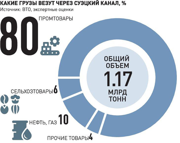 Пропускная способность океана практически беспредельна, но объекты, созданные человеком, уже не приспособлены к современным объемам перевозок, говорит заведующий московским отделением Института проблем транспорта РАН Владимир Цыганов. Через Суэцкий канал проходит около 13% мирового объема грузов, не так уж и критично для мировой экономики. Но важна ритмичность поставок, любой сбой ведет к миллиардным убыткам, замечает вице-президент Российской ассоциации экспедиторских и логистических организаций Сергей Желаннов. На будущее можно было бы создать склады для товарных запасов. Только сейчас это должны быть огромные терминально-логистические центры. Дешевле будет расширить Суэцкий канал, говорит Цыганов. Еще эффективнее пустить грузы через российские транзитные пути.