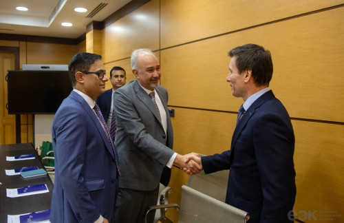 Министр по торговле Евразийской экономической комиссии Андрей Слепнев провел встречу с недавно приступившим к работе Чрезвычайным и Полномочным Послом Исламской Республики Пакистан в Российской Федерации Файсалом Ниазом Тирмизи.